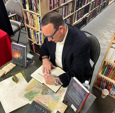 During the signing, I’ll also be previewing the cover of my new work-in-progress novel, Saving Ramstein, which shifts the lens to the Cold War and the U.S. military presence in late-1980s Germany.